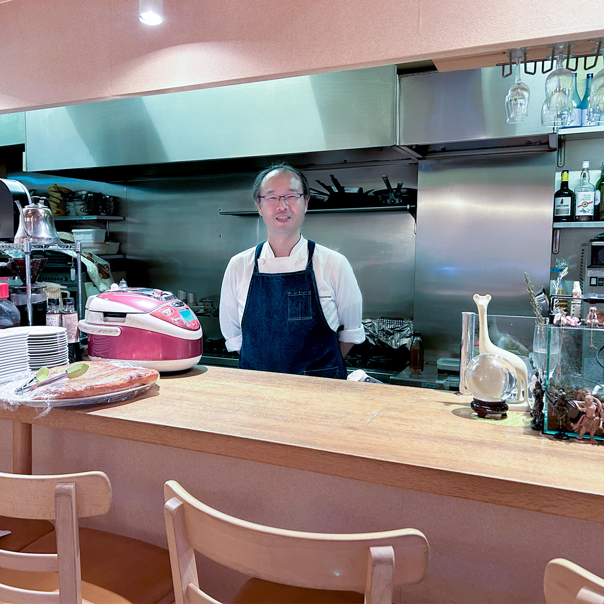 尼崎・武庫之荘にある「栄養士」や「野菜ソムリエプロ」などの資格も持つ高見シェフによるオーガニックフレンチレストラン。尼崎市政110周年ロゴをヒントに、ロゴデザインに採用されている3つの尼崎伝統野菜のひとつである尼いもを使った新作デザートを考案。コース料理の最後に提供されるデザートメニューのひとつのカヌレを「尼いもカヌレ」としてバージョンアップした。カヌレ好きの常連さんにも好評で、土日限定デザートとしてコース料理の締めを飾る。事前予約すればカヌレのテイクアウトもできる。