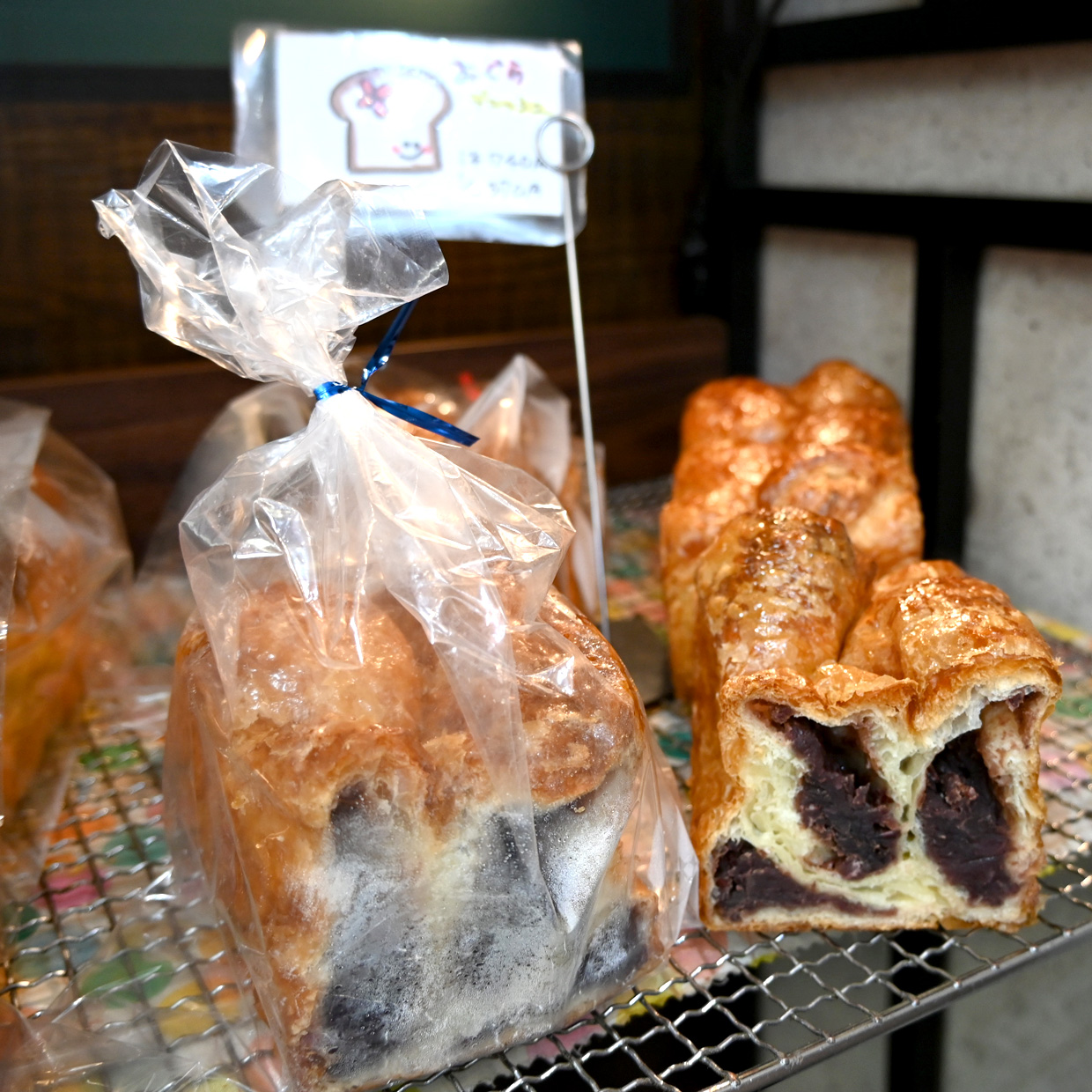 神戸や京都のベーカリーで修業したパン職人・前川剛廣さんが、「尼崎の人たちに喜んでもらえるパンとは?オシャレすぎず、当たり前すぎず」と考え、1995年に生み出したデニッシュ食パン。甘納豆やリンゴ煮入りも試したが、地元の人たちに愛されて残ったのが小倉デニッシュ。甘さ控えめのあんこを塩味のクロワッサン生地で包み、仕上げにアプリコットジャムで軽やかさを添える。切り口を見れば一目でわかる、主張の激しいあんこは「半端な量は許せない」という信念ゆえ。小ぶりで手でちぎりやすく、つい1本食べてしまうから「止まらないからハーフサイズにする」という声も多い。売り切れると「もうないの?」と惜しむ声が上がる看板商品。
